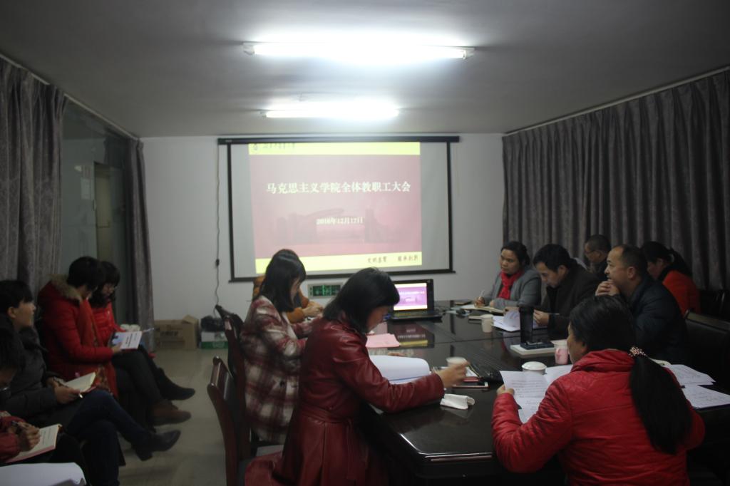 (通讯员 陈洪) 12月 12日 下午,马克思主义学院召开全体教职工大会,党总支书记、院长叶利军主持会议,学院全体教职工参加会议。
