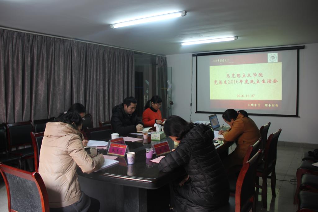 (通讯员 罗雪花)12月26日下午,马克思主义党总支召开2016年度民主生活会,会议由学院党总支书记叶利军主持,党总支班子成员黄汀、刘登科、龙斌、陈洪参加会议。校纪委书记张玉芬全程参加会议并做重要指示。