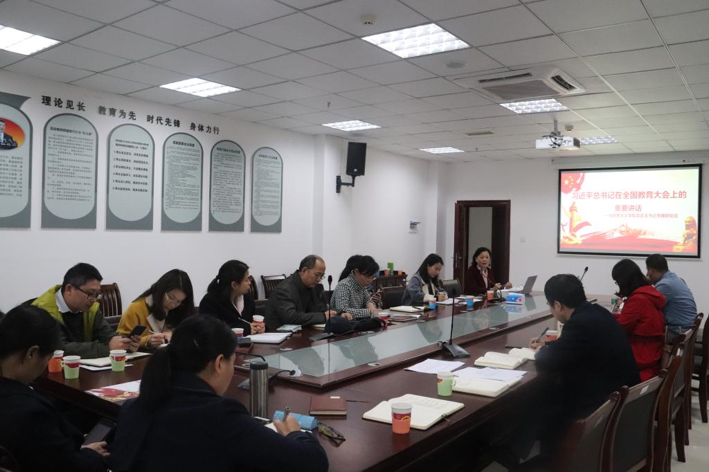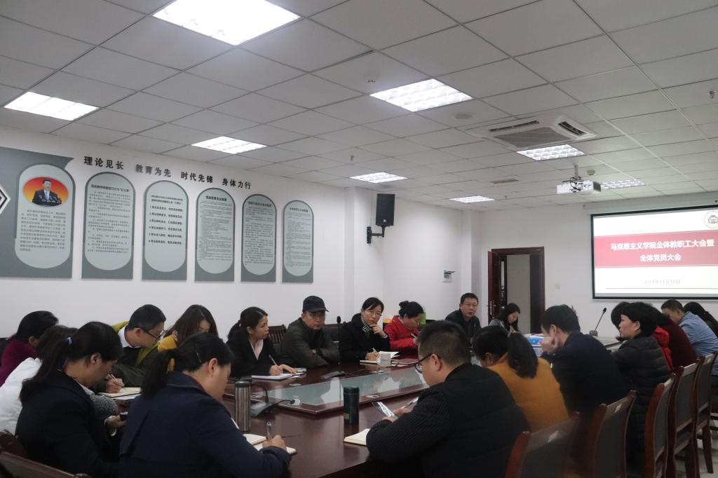 11月16日下午,马克思主义学院召开全体教职工大会暨全体党员大会,学习贯彻习近平总书记在全国教育大会上的重要讲话精神,院党总支书记李晖主持会议。