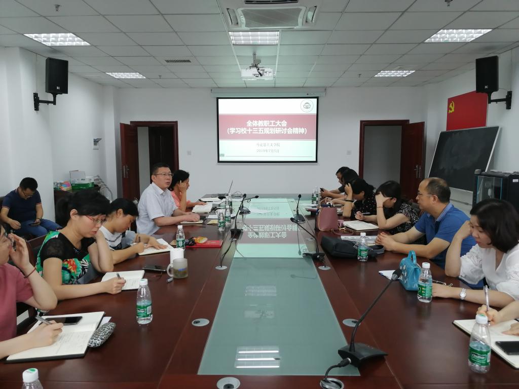 2019年7月5日,我院在学院会议室召开全体教职工大会,传达2019年暑假校(院)处以上干部专题研讨班的重要精神,会议由党总支书记李晖主持,学院全体教职工参加。