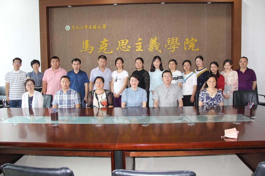 2019年7月28日上午,湖南中医药大学马克思主义学院党总支书记李晖、院长叶利军、副院长黄汀等一行14人前往黑龙江中医药大学交流考察。黑龙江中医药大学马克思主义学院院长周苏娅、总支书记刘俊、副院长许佳及部分骨干青年教师参加了交流会。会议由黑龙江中医药大学马克思主义学院院长周苏娅主持。