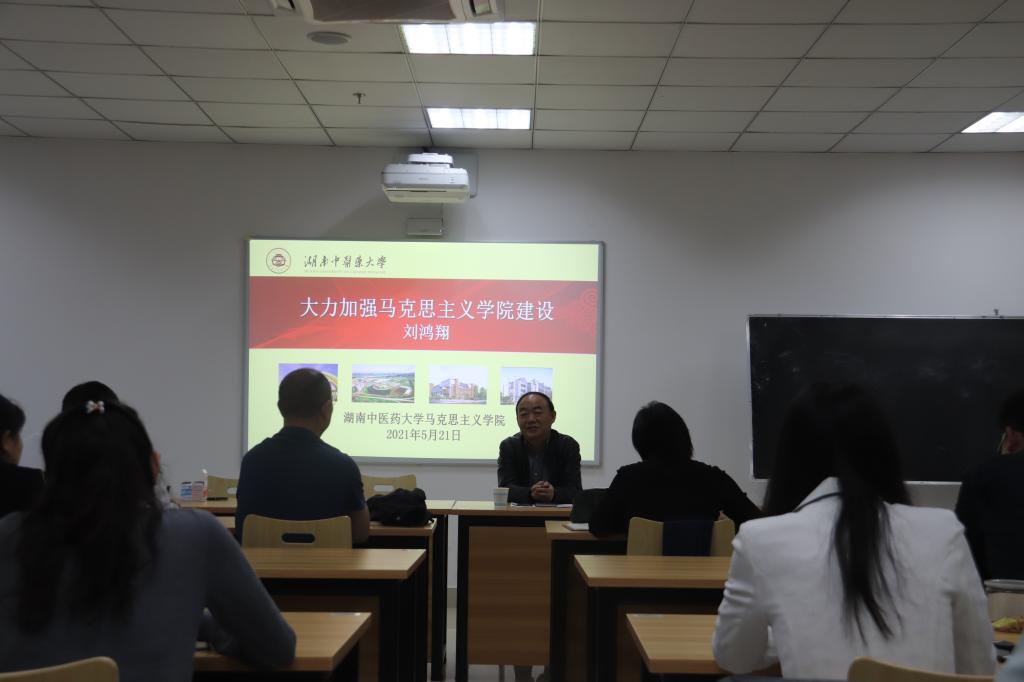 5月21日下午,副校(院)长、马克思主义学院党总支书记刘鸿翔在马院教室召开“大力加强马克思主义学院建设”专题座谈会,我院全体教职工参会。