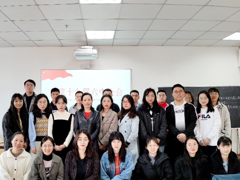 2021年11月19日13:30,学院研究生党支部书记李雪晶老师在三教3906教室给全体研究生党员上了一堂“学习贯彻中国共产党第十九届中央委员会第六次全体会议公报内容”党课,马克思主义学院全体研究生团员列席参加学习。