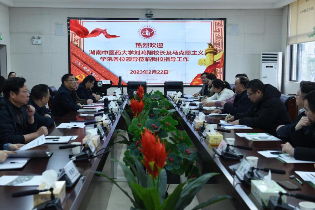 2月22日,我校副校长刘鸿翔及马克思主义学院院领导、教师代表赴株洲湖南中医药高等专科学校,正式启动与湖南中医药高等专科学校马克思主义学院的对口协作工作。湖南中医药高等专科学校党委委员、副校长陈卫平,湖南中医药高等专科学校党委委员、纪委书记黎敬章,湖南中医药高等专科学校马克思主义学院院领导及部分教师出席活动。