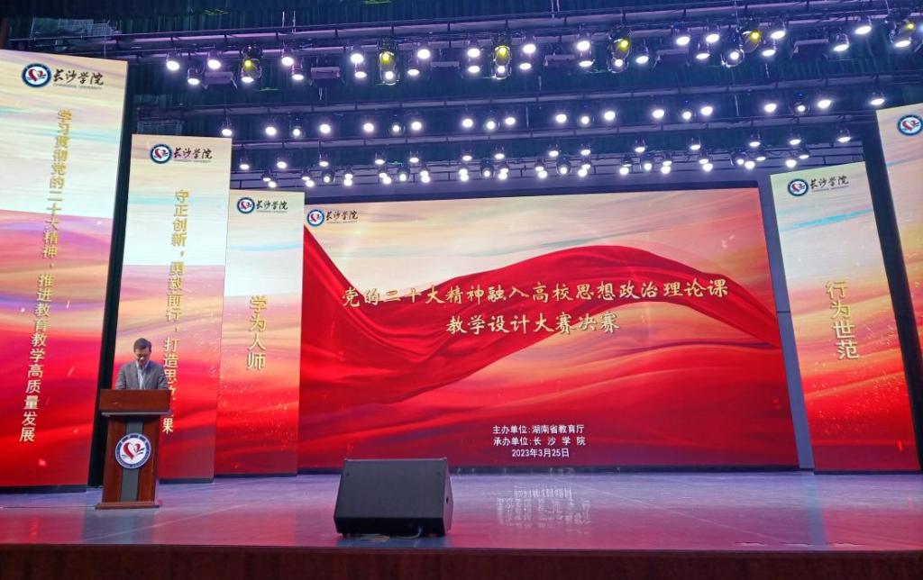 3月25日上午,由湖南省教育厅主办的“党的二十大精神融入高校思想政治理论课教学设计大赛”决赛在长沙学院举行,我院教师肖卜文、耿志慧进入决赛,并最终分别获得《思想道德与法治》课程本科组二等奖和《毛泽东思想和中国特色社会主义理论体系概论》课程本科组二等奖。此外,我院朱红英教授在复赛阶段获得《中国近现代史纲要》课程本科组三等奖。