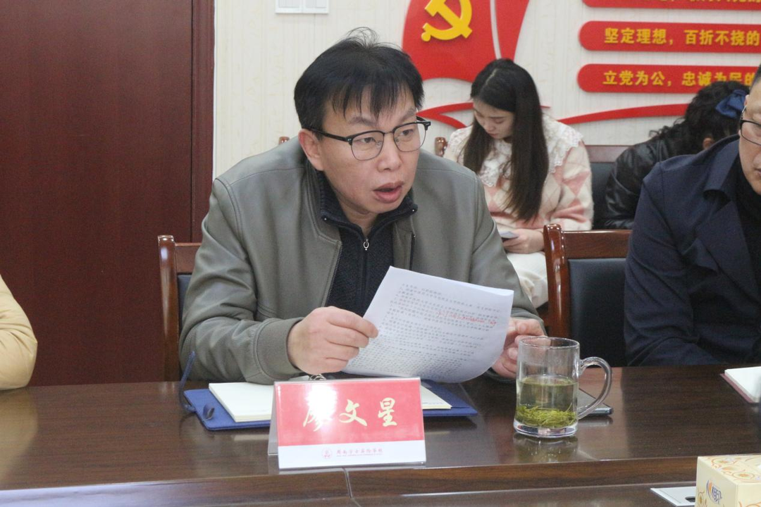 周南学士实验学校党建专干刘其林就2023年党建共建工作计划进行解读。他指出,学校创新推行“党组织领导的思政育人年级生态成长共同体建设”工作,双方可以开展“手拉手”一体化集体备课、湖南中医药大学马克思主义学院精品思政课送课交流、学院党员对口帮扶周南学士实验学校部分“学困生”活动,扎实开展思政课工作,提升思政课育人实效,有效发挥共建平台的作用。