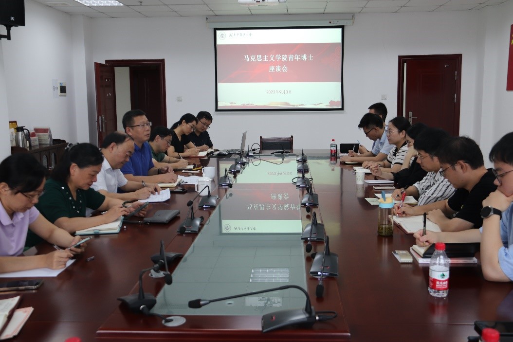教职工大会结束后,学院又召开了青年博士座谈会,学院党政领导班子、教研室主任、专项博士、学院行政人员参加座谈会。座谈会上,专项博士逐一讲述了对于学校专项博士计划的意见以及对目前工作的想法与困惑,学院领导逐一进行了答复。座谈会最后,刘鸿翔副校长进行总结讲话,他表达了对各位青年博士的期待,指出成功是拼搏出来的,希望青年博士们保持朝气蓬勃、奋发向上,同时待人接物秉持宽容之心,并祝愿各位博士在马克思主义学院都能有所收获。