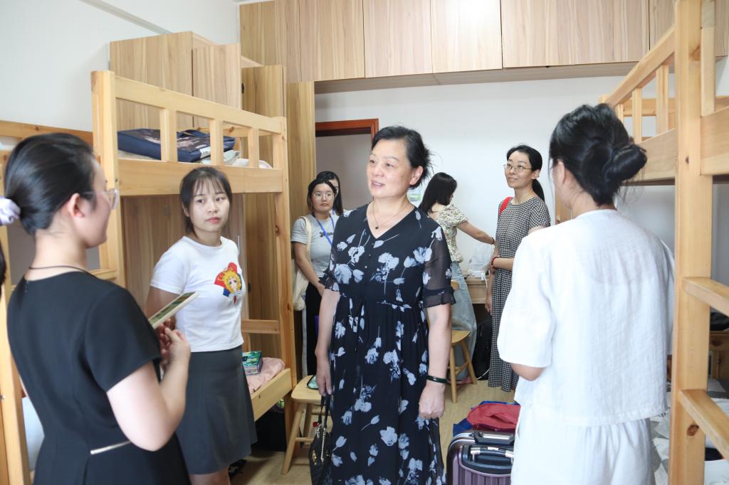 9月10日下午4时,新生报道结束后,黄汀副院长,科教科王迪老师、何前方老师,办公室耿志慧老师,以及同伴辅导员谢嘉仪共同前往新生寝室,查看新生宿舍情况,并解答新生生活与学习上的疑惑。